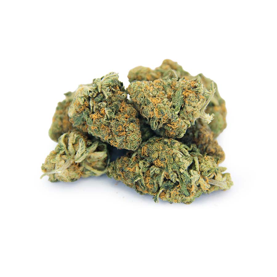 AK-47, also known as “AK,” “AK47” or “AK 47,” is a slightly sativa dominant hybrid strain (65% sativa/35% indica) created through crossing the classic Colombian X Mexican X Thai X Afghani strains. This infamous strain is famous for its one-two cerebral effects that will leave you feeling buzzy for hours on end. The high starts almost as soon as you exhale, beginning as a cerebral lift that offers a boost of the spirits and an influx of buzzy euphoria. You’ll find conversations come easily as your mind flies higher and higher into happiness and your body settles into a state of light relaxation and ease. With these effects and its high 13-20% average THC level and 0-1% CBD level, AK-47 is often chosen to treat those suffering from conditions such as chronic stress or anxiety, depression, chronic pain and headaches or migraines. This bud has a sour yet sweet flowery earthy flavor with a lightly spicy exhale that intensifies the more that you toke. The aroma is very similar, with an earthy and herbal overtone that’s accented by flowery spices. AK-47 buds have oversized spade-shaped minty green nugs with lots of thick orange hairs and a coating of frosty amber crystal trichomes.