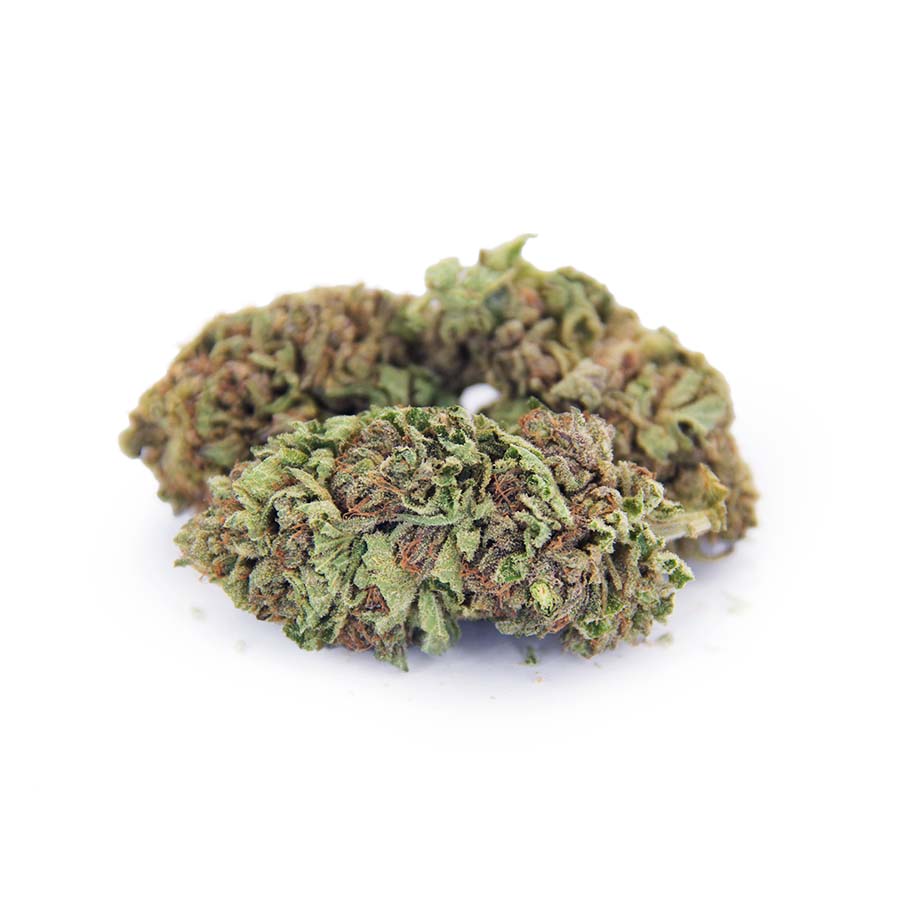 Cookie Puss is a rare slightly indica dominant hybrid strain (60% indica/40% sativa) created through a cross of the classic Girl Scout Cookies X Cat Piss strains. Weird name aside, Cookie Puss is the perfect bud for anyone who’s looking for something to help them relax and maybe even get it on. The high starts with a subtle lift in the back of the head that boosts the spirits and infuses your mind with a sense of calm. As your euphoria expands, a tingly feeling will begin to build in your neck and spine, expanding quickly throughout the rest of your body with a relaxing and totally arousing effect. In combination with its super high 24% average THC level, these effects make Cookie Puss the perfect choice for treating conditions such as chronic stress, depression, chronic fatigue, nausea or appetite loss and mood swings. This bud has a sweet lemon lime flavor with a lightly sour diesel exhale. The aroma is of pungent earth and diesel with a sharp citrus overtone that increases in potency the more that you toke. Cookie Puss buds have heavy tapered olive green nugs with sparse dark amber hairs, rich pink undertones and a frosty thick coating of tiny pink-tinted white crystal trichomes.