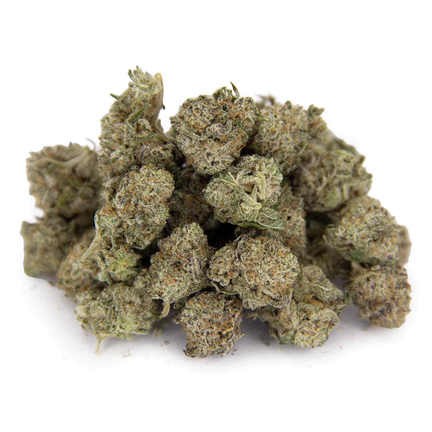 Ice Cream Cake is a rare indica dominant hybrid strain (75% indica/25% sativa) created through a cross of the Gelato 33 X Wedding Cake strains. With this bud, the name says it all in the flavor department. Ice Cream Cake packs a super delicious cheesy creamy flavor with a sweet nuttiness that lingers long after you finish your final toke. The aroma is of the same nature, with a light pungent effect to it that’s released as the nugs are burned. The Ice Cream Cake high is just as beautiful as the flavor, with lifted and relaxing effects that will have you kicking back in no time flat. The high starts with a rush of cerebral effects that lift your mind into a state of pure happiness and ease, pushing out any negative or racing thoughts immediately. Soon after, a relaxing body high will start to creep into your physical form, leaving you falling deeper and deeper into a couch-locked state of sedation before you eventually begin to drift away. With these calming effects and its high 20-25% average THC level, Ice Cream Cake is said to be perfect for treating those suffering from depression, chronic pain, insomnia, and nausea or appetite loss. This bud has small dense grape-shaped forest green nugs with thick orange hairs and frosty white crystal trichomes.