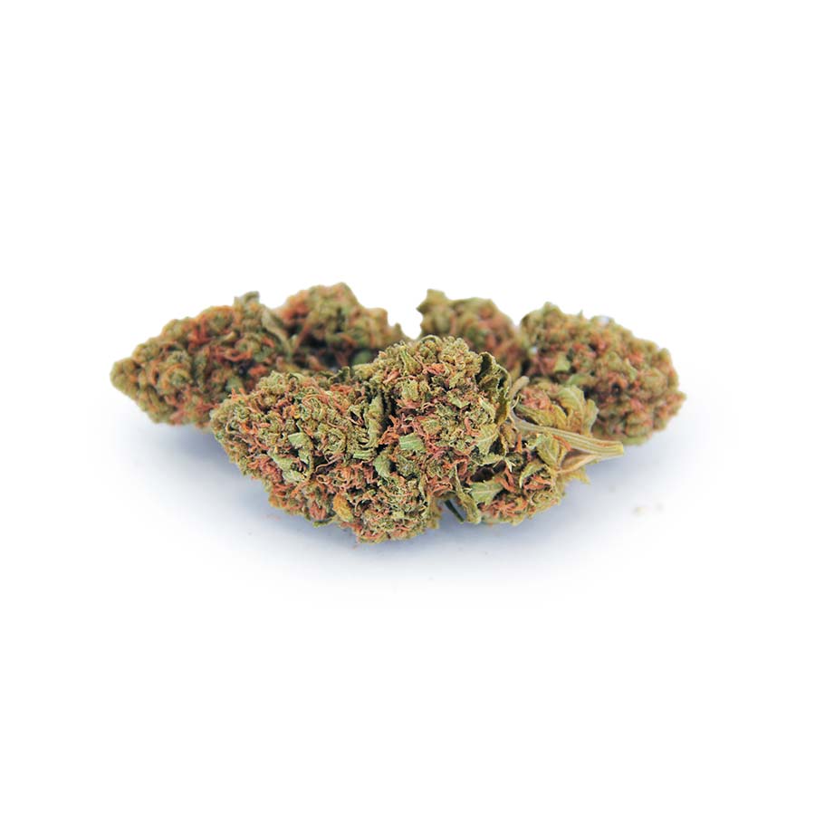 Jet Fuel, also known more commonly by the name “G6,” is a sativa dominant hybrid (70% sativa/30% indica) strain created through crossing the infamous Aspen OG X High Country Diesel strains. With its powerful 17-19% average THC level and soaring effects, Jet Fuel is often said to be the “cocaine of marijuana.” And after one hit of this heavy hitter, you’ll definitely see why. The Jet Fuel high smashes into you with an immediate effect felt right in the forehead and behind the eyes. You’ll feel euphoric and uplifted with a sense of tingly cerebral energy that can leave you super giggly at times. As your mind soars through the clouds, your body will succumb to a feeling of complete relaxation that doesn’t cause sedation or couch-lock, but rather leaves you incredibly lazy. With these powerful effects, Jet Fuel is often a patient choice for treating chronic fatigue, migraines or tension headaches, chronic stress, mood swings, and depression. Jet Fuel has lumpy and flat heart-shaped olive green nugs with furry amber hairs decked in glittering amber crystal trichomes. The flavor is incredibly pungent with a diesel overtone accented by sweet skunk. Jet Fuel’s aroma is even stronger, with a pungent diesel effect topped with sweet skunk and pine.