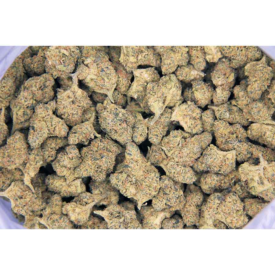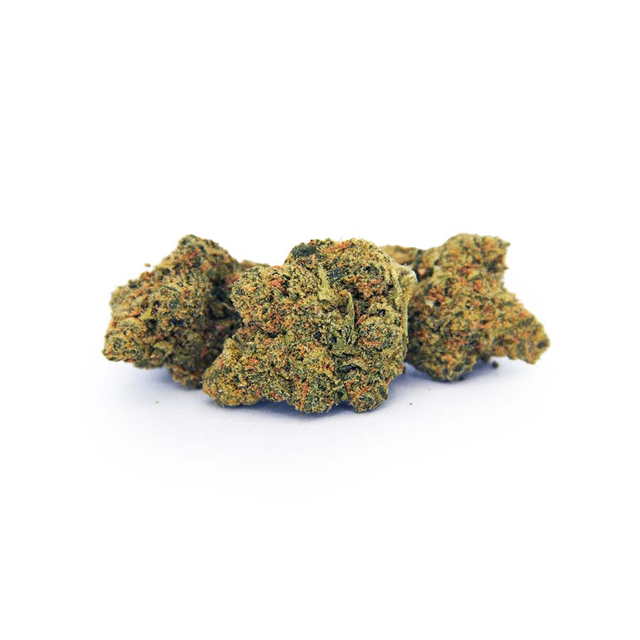 Orange Juice, more commonly known as “OJ Kush,” is an indica dominant hybrid strain that is thought to have a ratio of 70% indica to 30% sativa, although it has never been confirmed by breeders. This bud is a three-way cross of the infamous California Orange X OG Kush X Joseph strains and boasts a moderate THC level of up to 15% on average. This bud has a relatively balanced high with both relaxing body and uplifting cerebral effects. The high starts with an immediate onset of an energizing cerebral rush that provides motivation and focus with a sense of purpose that’s perfect for waking up in the morning. A mellow body high follows that serves to anchor and relax your cerebral high without any effects of sedation or laziness. These powerful effects and moderate THC level make Orange Juice the perfect strain for treating conditions such as chronic pain, inflammation, chronic fatigue, and mild cases of depression. Much like its name suggests, Orange Juice has an insanely tasty aroma of sweet citrus with a sharp sour hint and a taste of sweet sugary orange juice that has a sharp sourness to it upon the exhale. This bud has large lumpy super dense spade-shaped light minty green nugs with rich purple undertones, fiery orange hairs, and a frosty layer of crystal white trichomes.