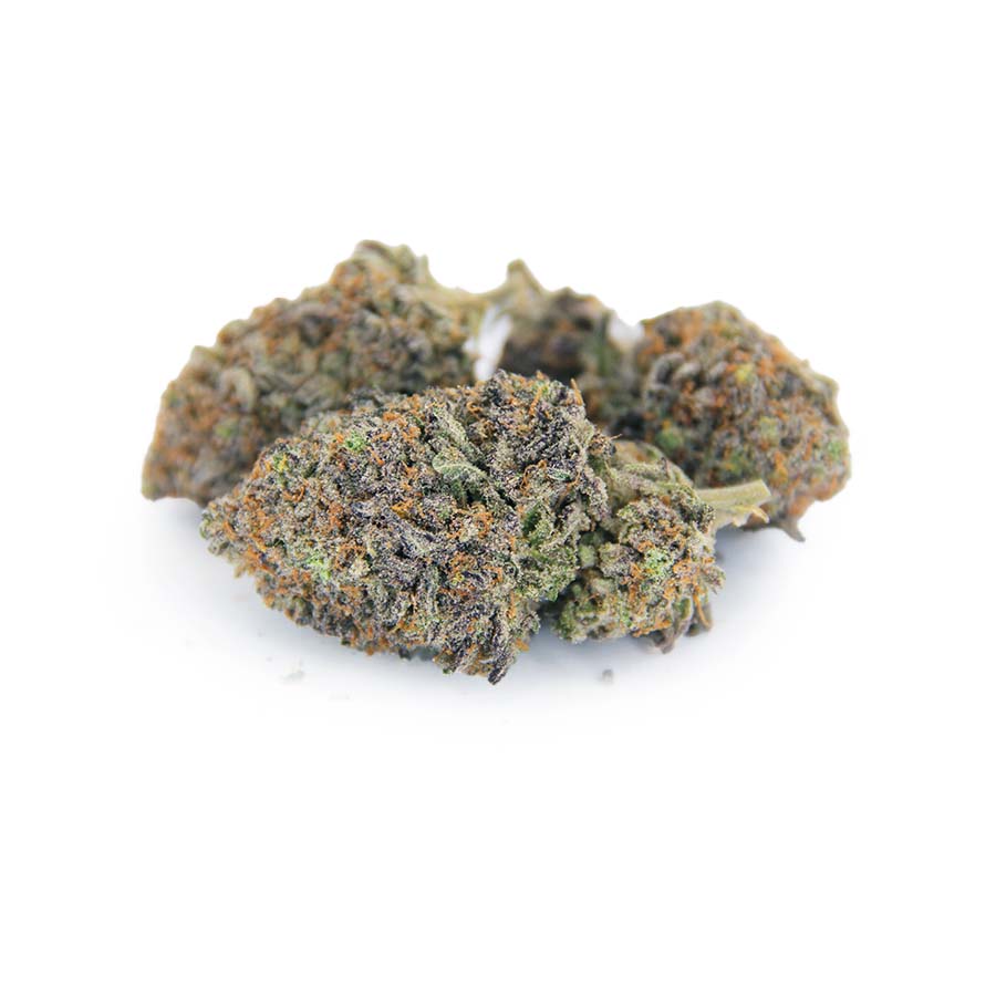 Rainbow Chip is an evenly balanced hybrid strain (50% indica/50% sativa) created through crossing the deliciously potent Sunset Sherbet X Mint Chocolate Chip strains. Named for its super delicious fruity flavor and vibrant appearance, Rainbow Chip is the perfect flavorful bud for any hybrid lover. This lovely lady has a sweet fruity chocolate flavor with hints of minty herbs and sour citrus, too. The aroma is very fruity and sweet with an herbal chocolatey overtone that is almost like a bowl of sweet chocolate mint ice cream. The Rainbow Chip high comes roaring in almost as soon as you exhale, filling your mind with a heavy tingly effect that quickly spreads throughout your entire physical form. You’ll feel motivated and energized with a sense of euphoria and focus that quickly turns social, lending itself well to any creative circumstance or conversation you run into. Thanks to these long-lasting effects and its super high 20-22% average THC level and 1-2% CBD level, Rainbow Chip is often chosen to treat those suffering from conditions such as chronic stress or PTSD, depression, chronic fatigue and ADD or ADHD. Rainbow Chip buds have airy grape-shaped forest green nugs with thin light orange hairs and a frosty thick coating of tiny amber crystal trichomes.